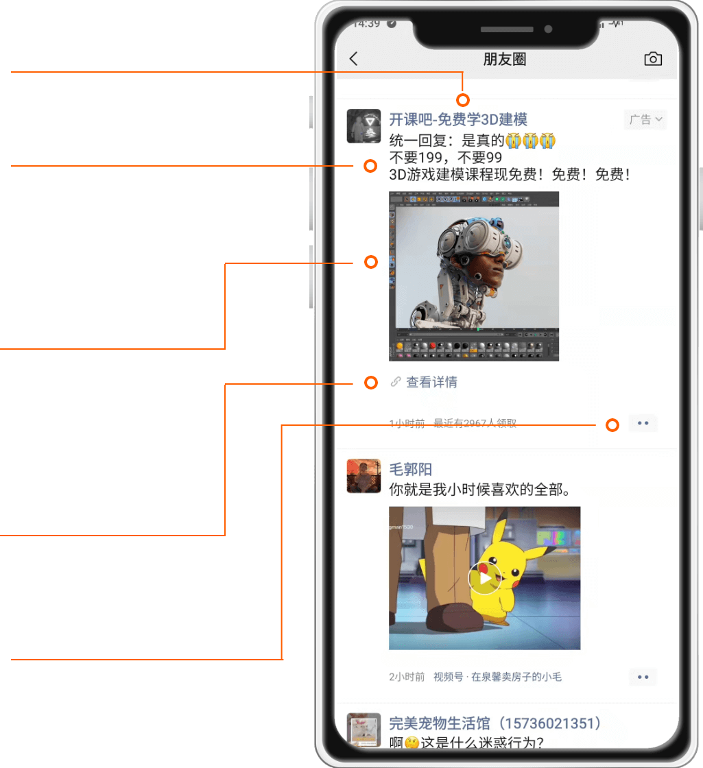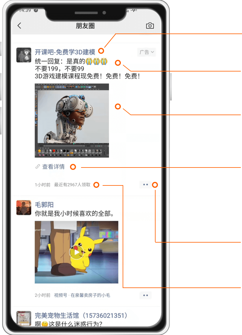 • 朋友圈竞价广告,旅游等5个相 关行业支持海外国家“旅行到 访”定向:支持定位常住国家在 中国,目前在海外国家到访用 户。
